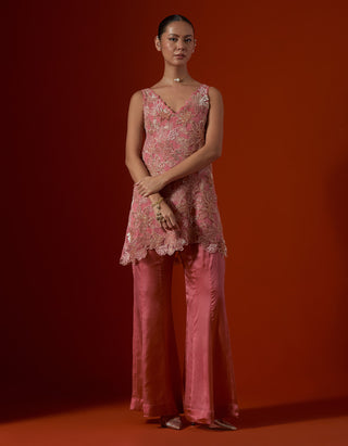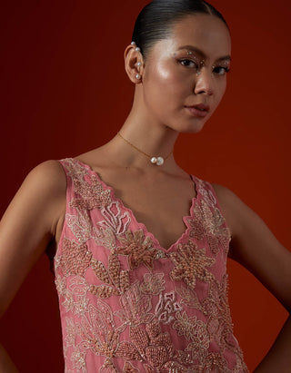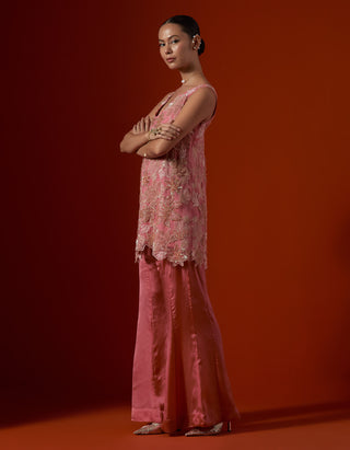 Featuring a salmon floral cutwork sharara set.