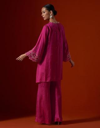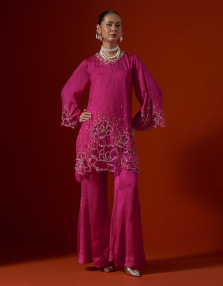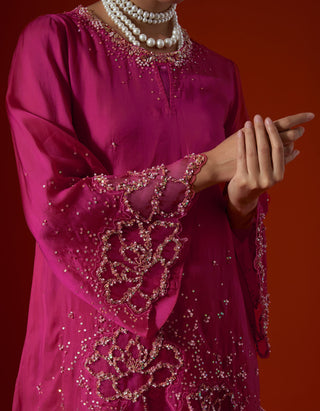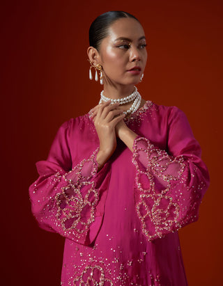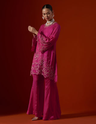 Featuring a hot pink sharara set with sequined floral embroidery.