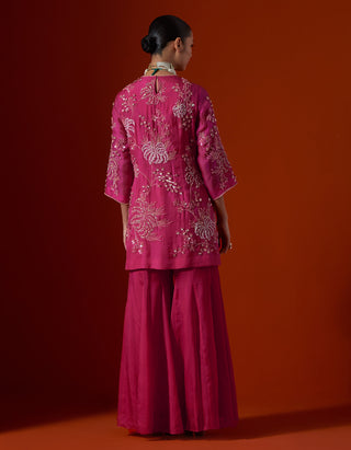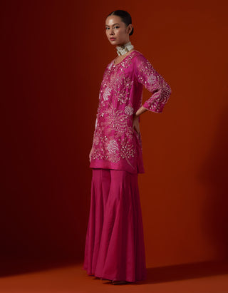 Featuring a hot pink sharara set with intricate floral hand embroidery.