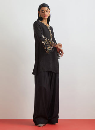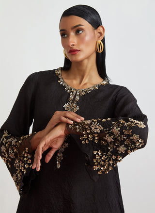 Embroidery: Intricate floral hand embroidery in beads, crystals and sequins.