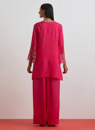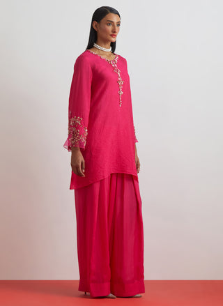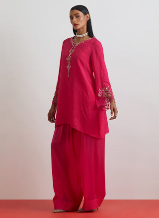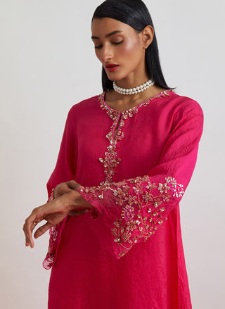 Featuring a hot pink salwar set with embellished neckline and sleeves