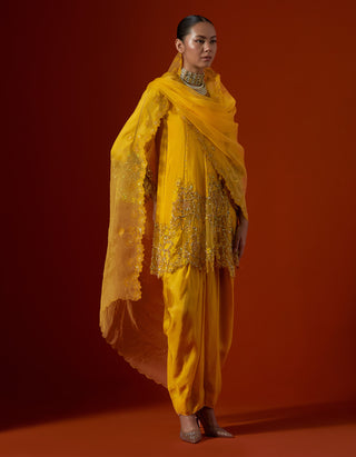 Featuring a amber organza dupatta with floral thread work.