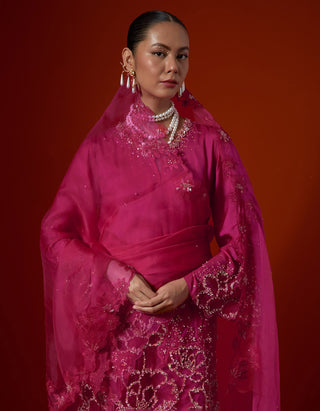 Embroidery: Floral thread work highlighted with sequins, beads, and crystals.
